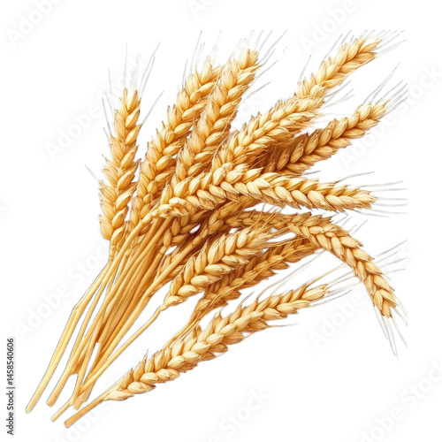 Wheat Stalks Golden Bunch Isolated on Transparent Background Detailed Ears Harvest