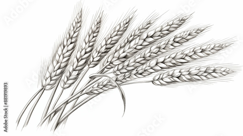 Wheats cereals sketch. Ears of wheat. Agriculture and growing crops, grain and barley. Engraving of rural plants and scoop with harvested rye. Food and organic. Generative Ai