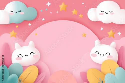 Whimsical Clouds, Cute cartoon clouds with stars, Playful illustration