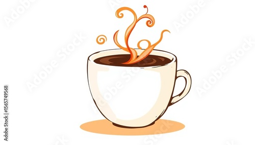 Whimsical coffee cup with swirling steam, freehand style, artistic vector illustration, cozy, design