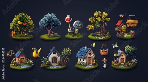 Whimsical Cottage & Treehouse Digital Painting Collection: A Fantasy Landscape AI Generated