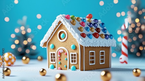 Whimsical Gingerbread House with Colorful Candy and Snowy Winter Scene
