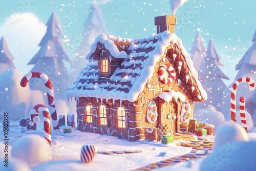 Whimsical Gingerbread HouseColorful Candy Accents inCheerful Winter Landscape