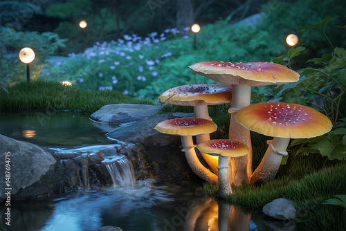 mushroom, glowing, fantasy, waterfall, forest, enchanted, nature, magical, stone, duck pond, twilight, whimsical, lush, foliage, water, flow, colourful, serene, peaceful, natural, landscape, fairy tale, mystical, outdoors, plant, autumn, fungal, fungal, toadstool, grass, food, macro, amanita, green, wild, season, brown, mushroom, closeup, white, edible, poisonous, moss, red, cap