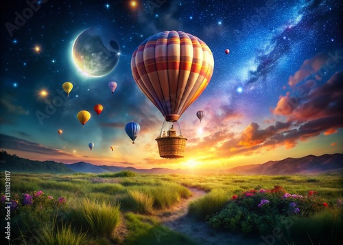 Whimsical Hot Air Balloon Adventure: Low Light Night Sky Fantasy