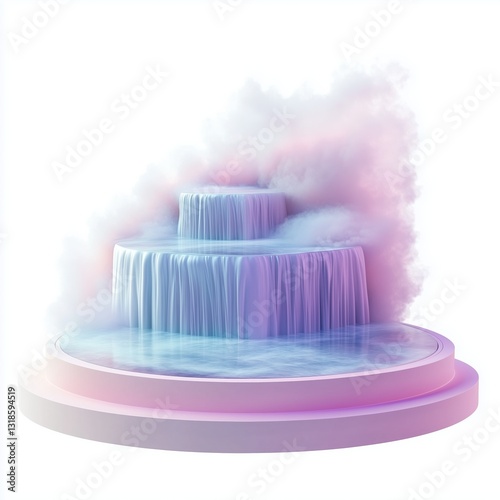layered, dais, whimsical, design, cascading, water, fog, effect, display, installation, decorative, feature, art, fantasy, element, colourful, fountain, stage, creative, structure, aethereal, ambience, sculpture, life events, visual, serene, environment, tranquil, setting, event, decoration, performance, space