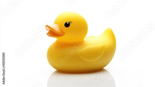 whimsical rubber duck with vibrant yellow color and glossy finish, isolated against a pristine white background. studio lighting highlights its playful shape and texture.