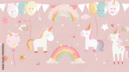 unicorn, birthday, banner, rainbow, balloon, celebration, party, pastel, cloud, magic, festive, cute, whimsical, fun, children, theme, decoration, colourful, dreamy, pink, fairy, tale, happy, joyful, fantasy, enchanting, background, cheerful, event, vibrant, design, imagination, star, moon, sparkle, flag, garland, happiness, dreamland, magical, adorable