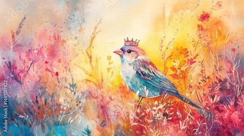 bird, sparrow, watercolor, crowned, colourful, vibrant, art, nature, floral, soft, sunlight, whimsical, bokeh, bright, peaceful, serene, beautiful, feather, songbird, wildlife, spring, colours, landscape, blossom, sunrise, happy, atmosphere, creative, decorative, illustration, abstract, gentle, artistic, playful, surreal, charming, cheerful