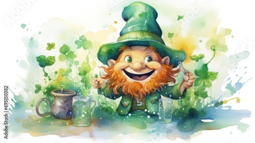 leprechaun, watercolor, lucky, drawing, green, illustration, holiday, irish, celtic, ireland, design, patrick, spring, symbol, decoration, card, saint, tradition, artistic, festive, celebration, culture, abstract, creative, painting, vibrant