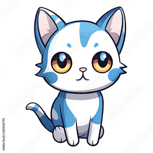 Whiskered Wonder: Delightful 2D Illustration of a Cat with Ojos Azules