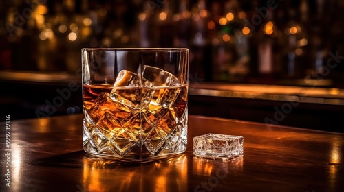 Whiskey on the Rocks at a Bar