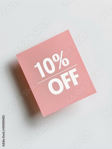 White '10% OFF' Text on a Light Pink Square Paper Note. White Background