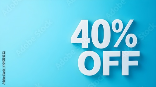 White '40% OFF' Promotional Sign on a Light Blue Background with Copy Space