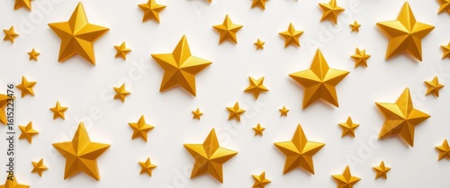 White background with a repeating pattern of gold stars of varying sizes, night, christmas