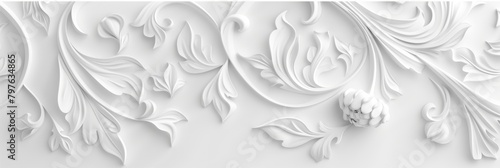 White baroque swirls create a classic and timeless wallpaper design, ideal for chic and bright interiors.