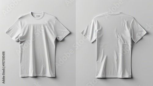 White beautiful T-shirt front and back on a flat surface on a gray background.