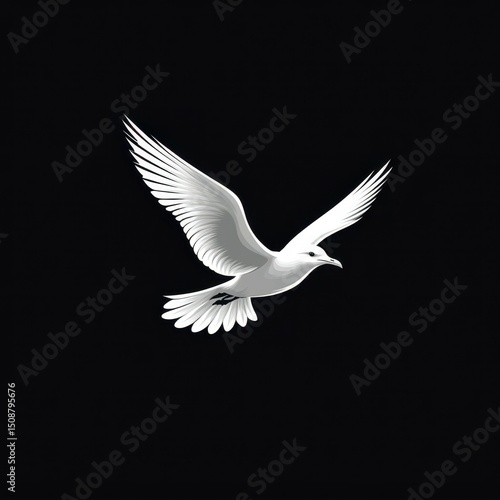 White bird in flight against dark background showcasing elegant wings and detailed feathers at dusk