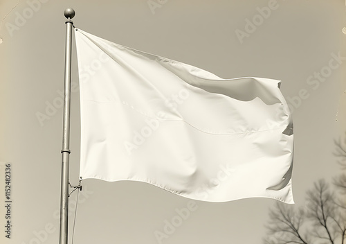 white blank flag cut pole background old