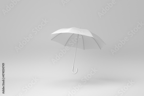 White blank umbrella isolated on white background. minimal concept. monochrome. 3D render.