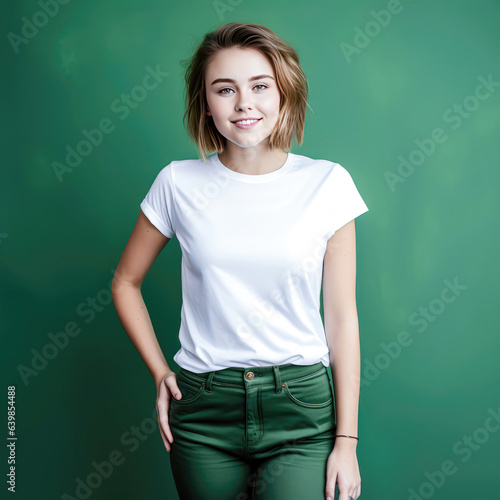 white background, attractive woman, teenage, smile, smiling, female model, girlfriend, cropped, person, casual clothes, grinning, upbeat, apparel, model, young adult, style, youth, wearing, t-shirt, stylish, brunette