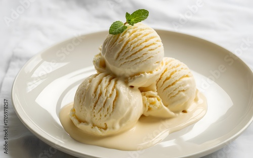 White bowl filled with three ice cream