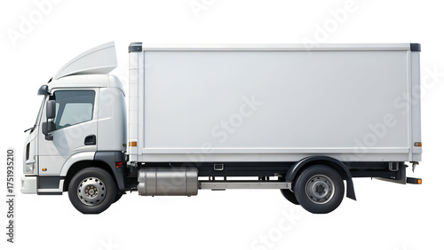 truck, van, lorry, vehicle, transport, delivery, logistic, shipping, cargo, freight, commercial, clean, modern, empty, blank, box, container, refrigerated, chassis, wheel, tire, engine, cab, door, window, side, profile, studio, cut-out, service, mover, haulage, courier, express, road, journey, travel, motion, speed, power, industry, business, trade, commerce, distribution