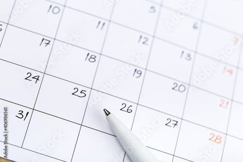 white calendar page for 2021 month schedule to make an appointment or manage the schedule every day with ballpoint pen for marks