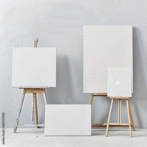 White canvas, posters mockup on the wall and floor, wall art mockup