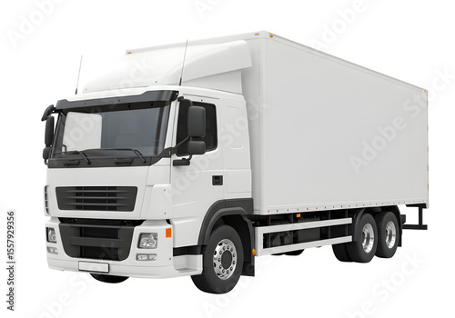 White cargo truck isolated on white or transparent background. Ideal for mockups, logistics, delivery services, and advertising design. PNG format.