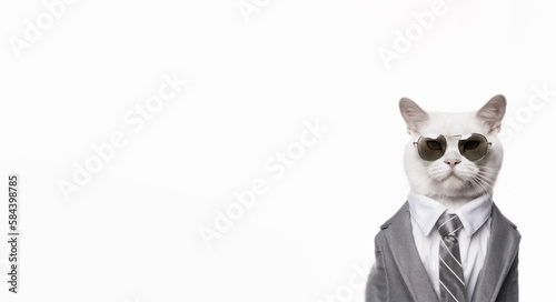 white cat in business suit . Created with Generative AI