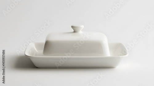 butter dish, butter, dish, ceramic, porcelain, white, kitchen, tableware, food, cooking, home, house, decor, utensil, kitchen utensile, crockery, elegant, simple, clean, minimalist, style, design, pottery, container, lid, cover, breakfast, eatery, cafes, dining, tabletop, white background, studio shot, isolated, object, advertising, royalty free, learning, artistic