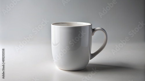 White ceramic coffee mug isolated on a neutral background with a subtle shadow, ready for your design or text to be placed on its surface.