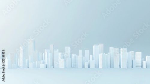 White cityscape background with buildings and skyscrapers on a light blue gradient, 3D rendering illustration of an urban landscape with copy space, minimalist style, high resolution, highly detailed