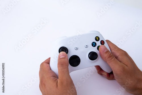 toy, video game, technology, joystick, accessory, background, buttons, buttons, closeup, console, control, controller, device, digital, electronic, entertainment, equipment, fun, game console, gamer, gaming, hand, isolated, leisure, macro, object, pad, play, recreational, station, television, video, video game, white, white background, wireless, box