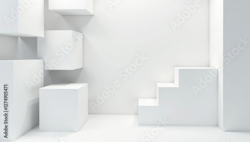 White cube box blocks random shifted background wallpaper banner with empty space, cube, abstract, design