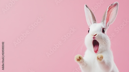 rabbit, white, cute, pink, background, surprised, expression, looking, advertising, free space, animal, cartoon, character, mascot, fun, playful