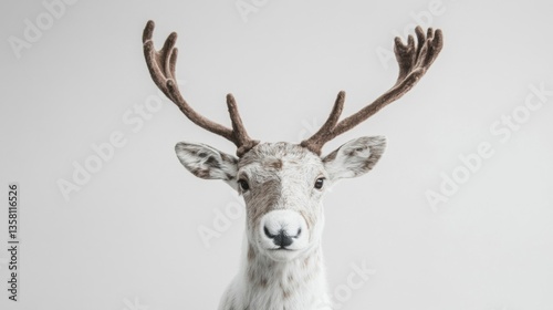 cervid, animal, wildlife, reindeer, fauna, mammal, antler, horned, white, brown, cute, adorable, fluffy, soft, nature, photo, portrait, closeup, studio, background, minimal, simple, elegant, winter, christmas, holiday, season, festive, celebration, art, design, illustration, graphic, image, picture, photo, visual, aesthetic, decor, home, wall