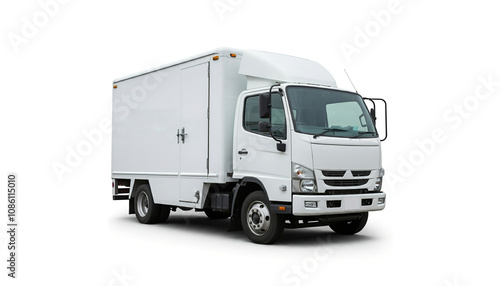 White delivery truck side view, isolated on white background.