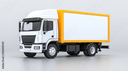 White Delivery Truck with Orange Box Design on Gray Background for Transportation and Logistics Use