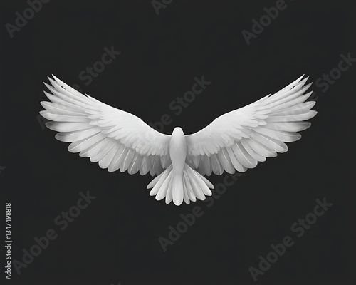 dove, white dove, peace, freedom, bird, wing, flying, fly up, flight, spirituality, hope, serenity, calmness, symbol, religion, faith, purity, innocence, elegance, grace, beauty, black background, dark background, minimalist, simple, abstract, design element, graphic, illustration, vector, artwork, logotype, emblem, icon, inspiration, motivation, ascension, spirit, animal, wildlife, nature