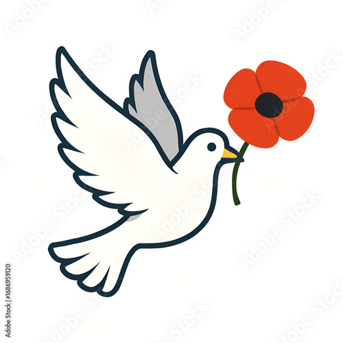 peace, dove, poppy, remembrance, symbol, white bird, tribute, ceremony, hope, oneness, memorial, heritage, freedom, honour, military, symbolic, commemorative, illustration, patriotic, harmony, dedication, red flower, memory, solemn, respect, veteran, tradition, white dove