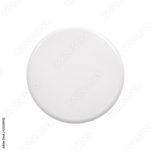 White Empty Round Badge Pin Brooch Isolated on White Background. Realistic 3D Illustration Close Up.