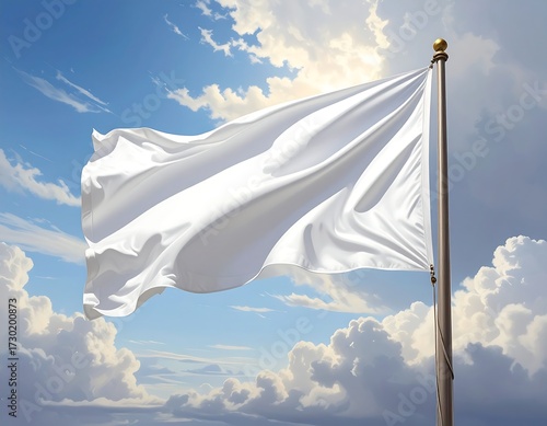flag, white, sky, cloud, sun, fabric, waving, blank, empty, peace, surrender, symbol, clean, pure, bright, day, wind, pole, canvas, texture