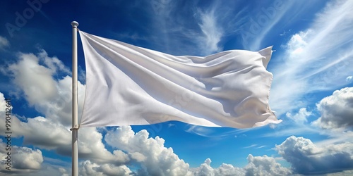 White Flag Waving in the Wind Against a Blue Sky With Fluffy Clouds, Flagpole, White, Sky, Clouds, Flag, White