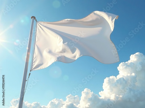 White Flag Waving, Sunny Day, Cloudy Sky, Closeup, High Definition