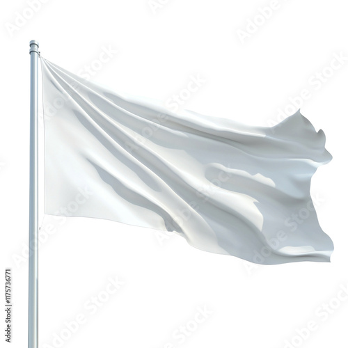 white flags waving in the wind on a transparent background, PNG image, PNG file, Generative art.