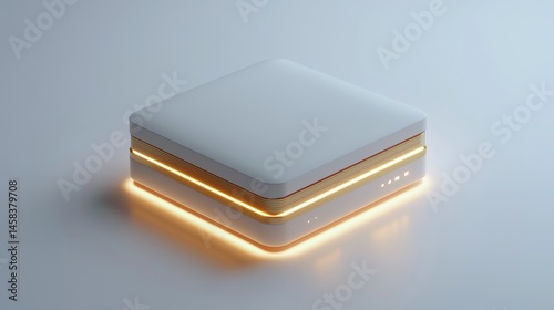 isometric, white, minimalist, technology, futuristic, glowing, light, modern, innovation, contraption, electronic device, object, square, geometric, shape, white background, digital, design, abstract, illustration, tech, future, minimal, style, simple, elegant, clean, bright, warm light, gold, device, isolated, background, rendering, product, model, graphic, image, visual