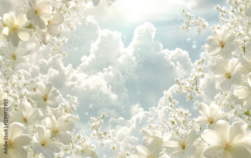 flower, sky, cloud, nature, white, serene, inspirational, tranquil, background, floral, bloom, blossom, peaceful, dreamy, heaven, atmospheric, sunny, light, fresh, gentle, harmony, beauty, elegance, composition, environment, scenery, purity, idylli, picturesque, calm, stillness, delicate, graceful, heavenly, cloudscape, natural, soft, vibrant, lush, breathtaking, enchanting, symmetry, aethereal, refreshing