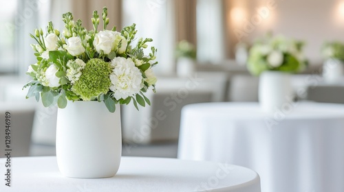 flower, arrangement, table, room, interior, design, white, decor, decoration, bouquet, green, vase, elegant, modern, light, fresh, spring, summer, wedding, event, celebration, party, hospitality, hotel, eatery, cafes, business, meeting, conference, luxury, simple, floral, centrepiece, clean, freshness, nature, beauty, style, cleanliness, springtime, foliage